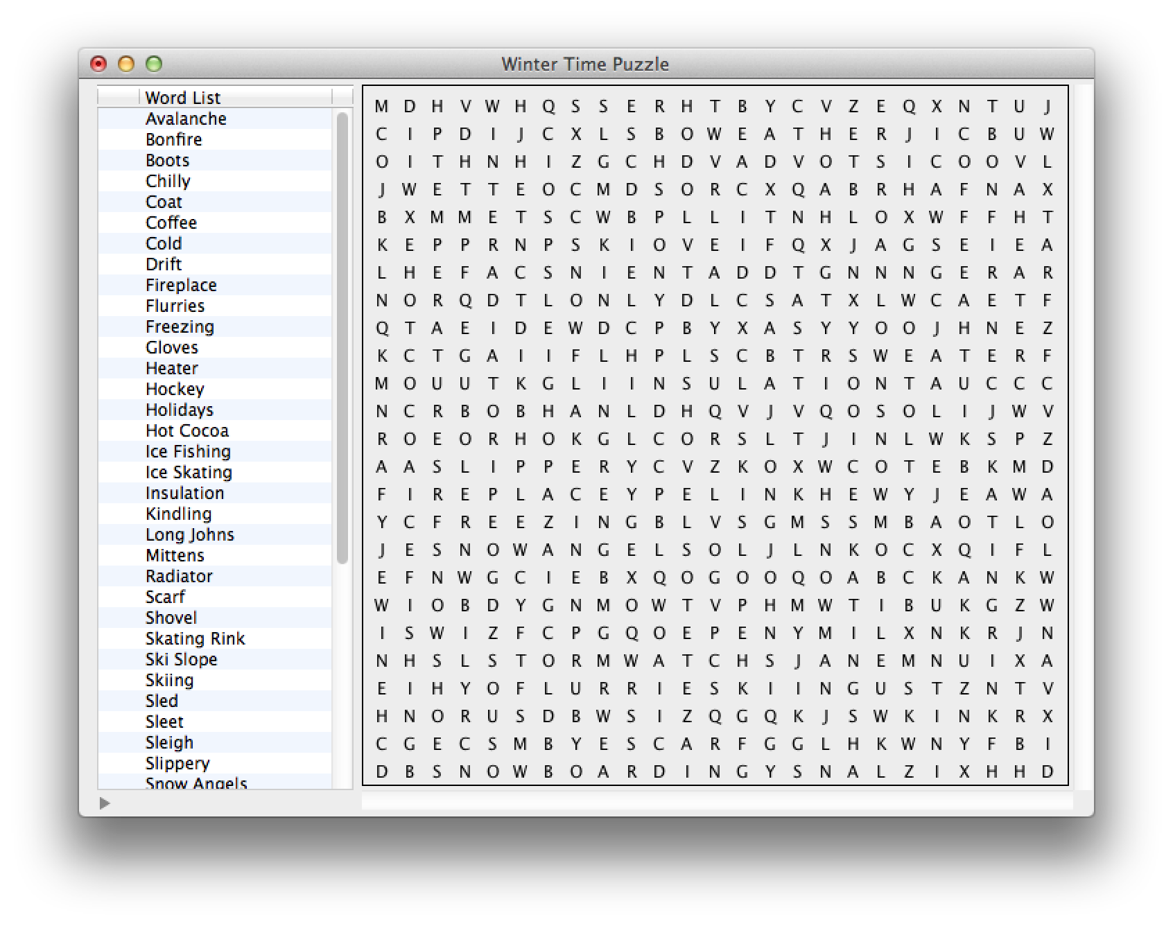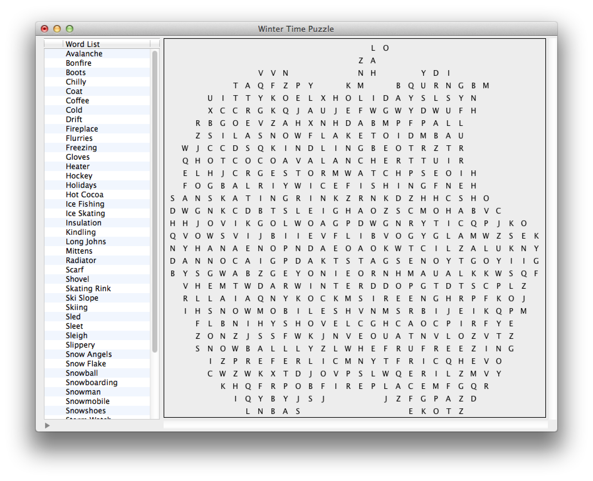 - Create Word Search puzzles of different shapes, sizes and difficulty.
